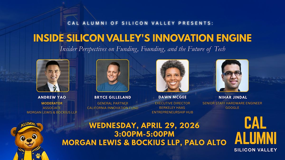 Join Cal Alumni of Silicon Valley for an open conversation with fellow Bears working across venture capital, university entrepreneurship, and deep tech. Each will share what they've seen and learned - from evaluating startups and supporting founders to building products at scale. Whether you are a Cal alum, a current student, faculty, or a friend of the Cal community, come for the conversation, stay for the connections.