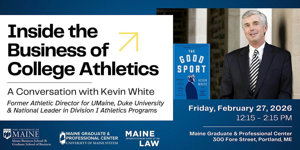 In conversation with Jude Killy, Director of Athletics at the University of Maine, White will also share insights from his recently published memoir, The Good Sport, offering a candid perspective shaped by high-stakes decision-making at the highest levels of collegiate athletics. Attendees can expect practical lessons and big-picture takeaways for anyone interested in sports business, leadership, and careers in a rapidly evolving industry.
