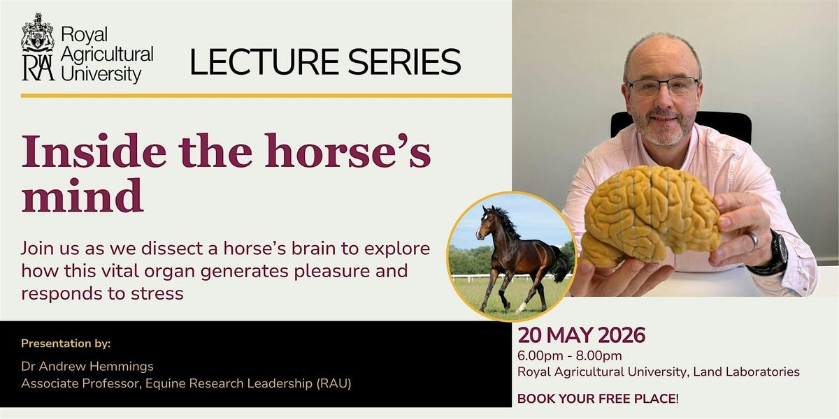 The lecture, entitled Inside the horse's mind: A demonstration of the dissection of a horse's brain, will be delivered Dr Andrew Hemmings, Associate Professor of Equine Research Leadership at the RAU.