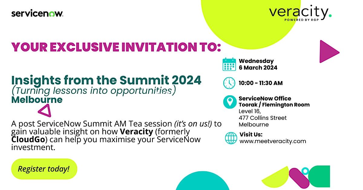Join us for a post ServiceNow Summit AM Tea session to gain valuable insight on how ) can help you maximise your ServiceNow investment.