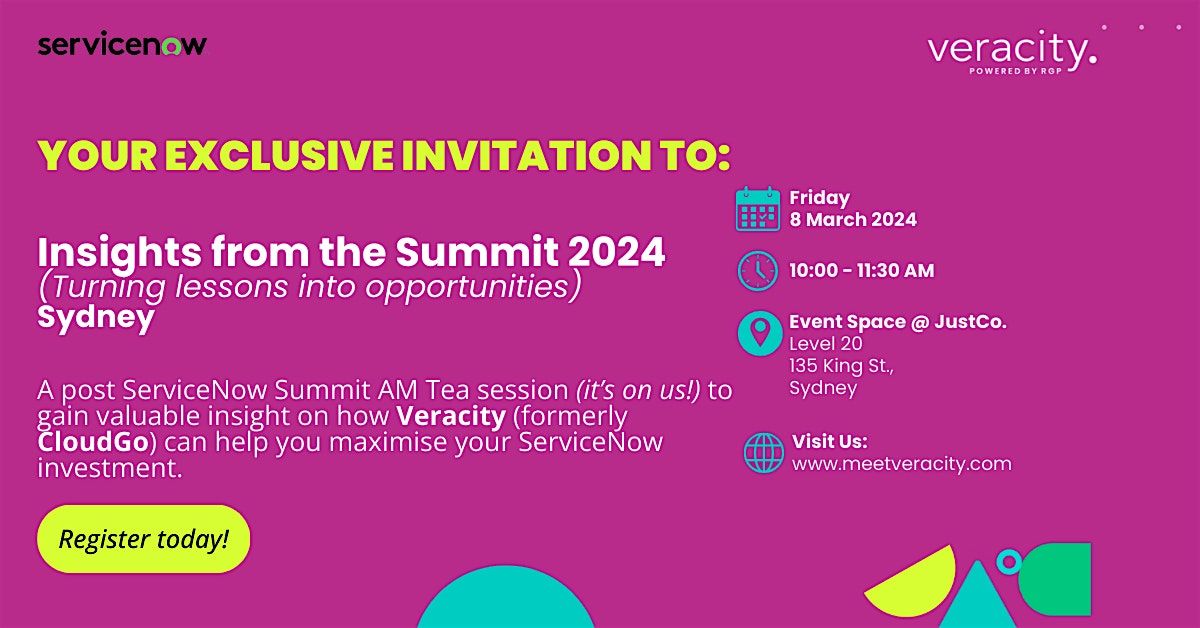 Join us for a post ServiceNow Summit morning tea session to gain valuable insight on how ) can help you maximise your ServiceNow investment.