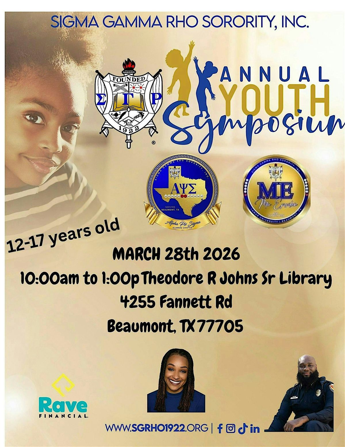 The Sigma Gamma Rho Sorority, Inc., Alpha Psi Sigma Alumnae Chapter of Beaumont, TX proudly presents its Youth Symposium—an empowering experience designed to equip young people with real-life skills for success.