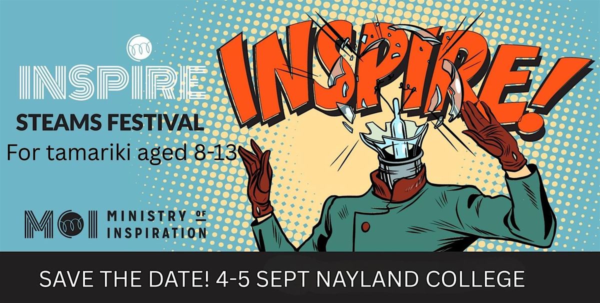INSPIRE Festival 2026 offers two days of student selected challenging discussions and hands-on workshops all focused around STEAMS (Science, Technology, Engineering, Arts, Maths, and Society). This year the festival is being hosted at Nayland College!