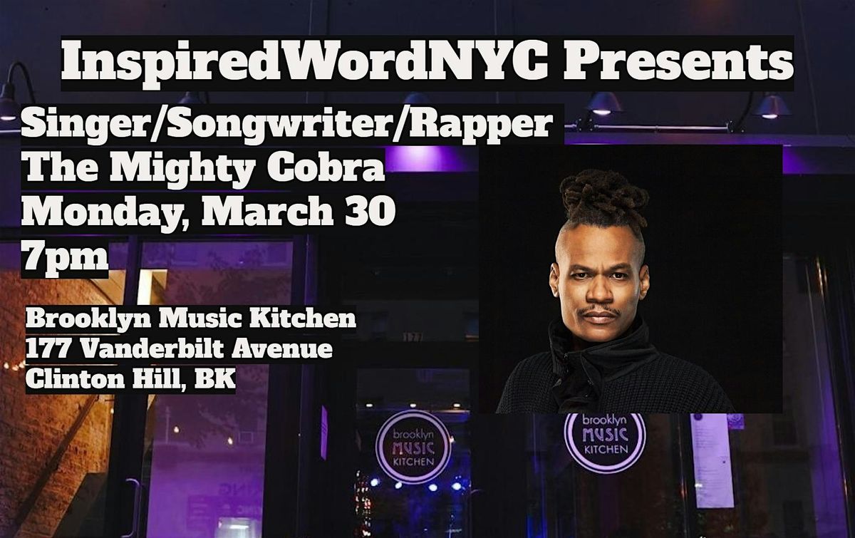 InspiredWordNYC Presents Singer/Songwriter/Rapper The Mighty Cobra at Brooklyn Music Kitchen in the heart of Clinton Hill, BK.