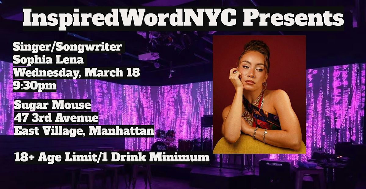 InspiredWordNYC Presents Singer/Songwriter Sophia Lena at Sugar Mouse in Manhattan's East VillageAbout this Event