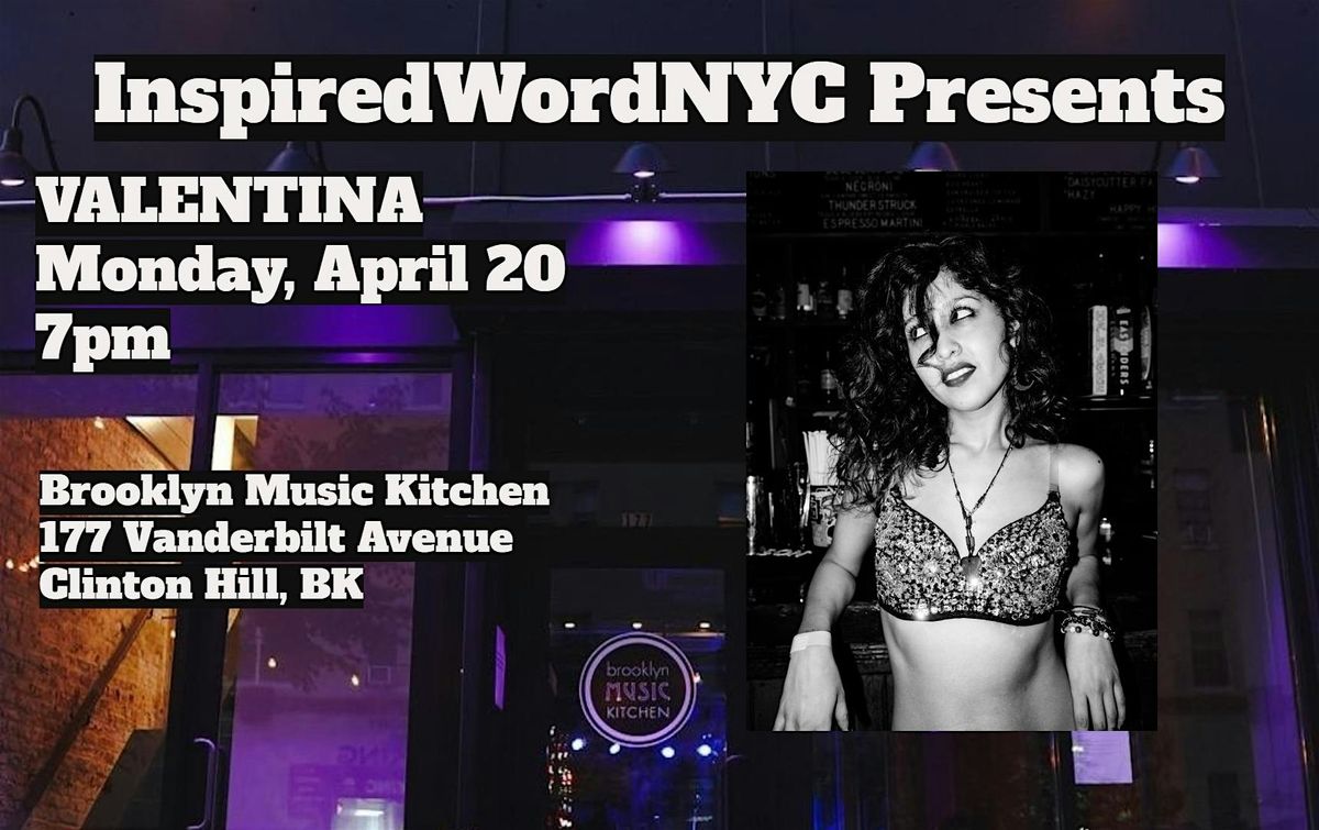 InspiredWordNYC Presents VALENTINA at Brooklyn Music Kitchen at the state-of-the-art Brooklyn Music Kitchen in the heart of Clinton Hiil, BK.