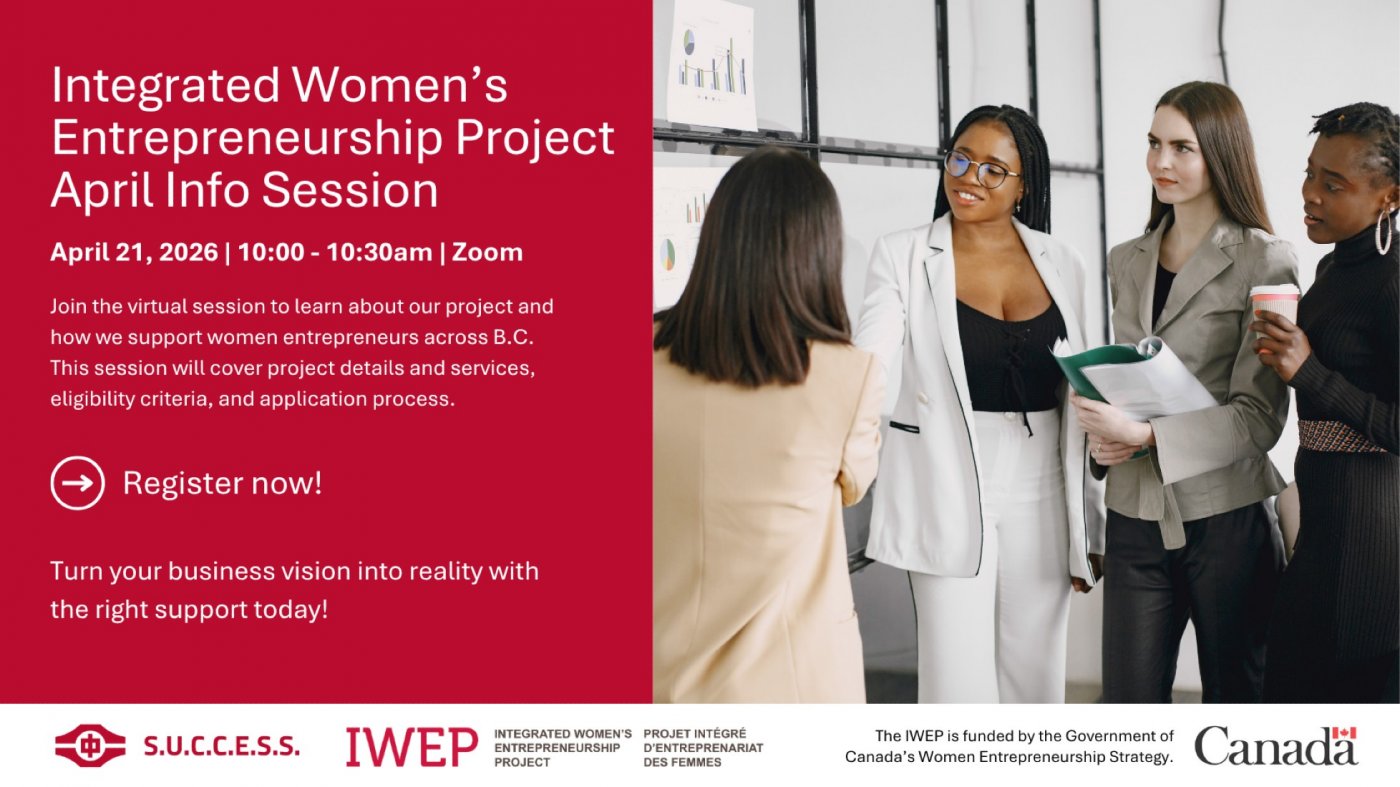 Join the upcoming virtual IWEP Info Session to learn more about our project and how we support women entrepreneurs across British Columbia.