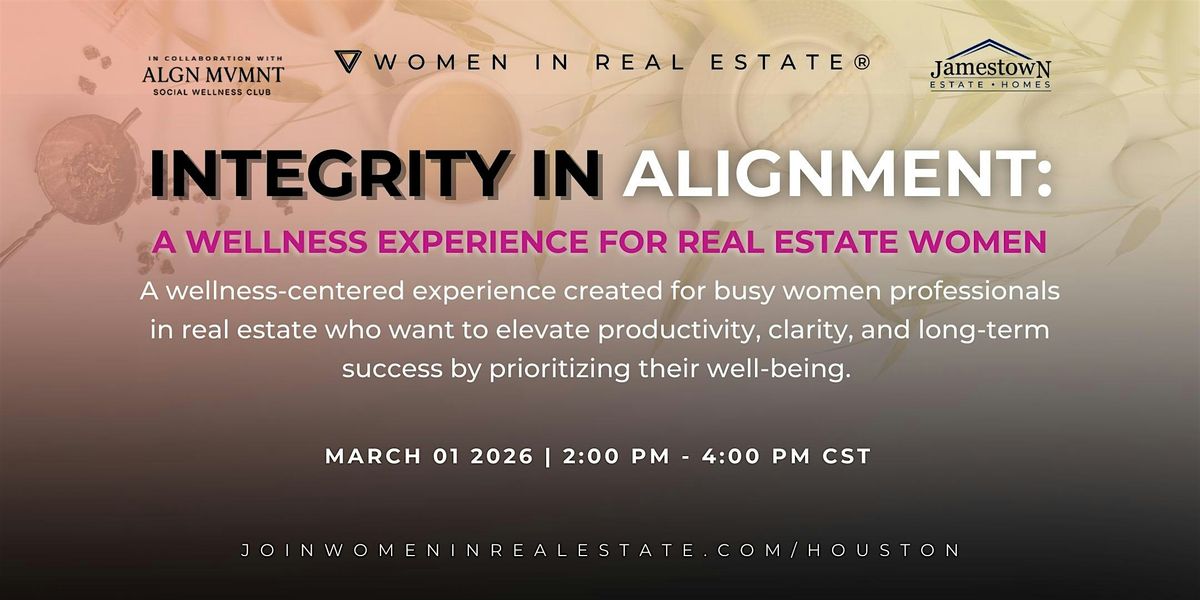 The Houston Chapter of Women In Real Estate® proudly presents Integrity in Alignment, a thoughtfully curated wellness experience designed specifically for women in real estate who are committed to sustainable success. This event provides a dedicated space to pause, reset, and realign — without stepping away from ambition. 💼✨