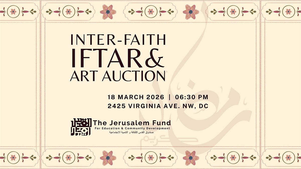 Maghrib prayer will commence at 7:18pm, followed by a catered Iftar, with words by Imam Yahya Hendi and Kyle Cristofalo. Paintings by Palestinian artist Zahi Khamis will be up for auction throughout the night, with 20% of auction proceeds donated to the Jerusalem Fund's outreach and aid efforts in Palestine.