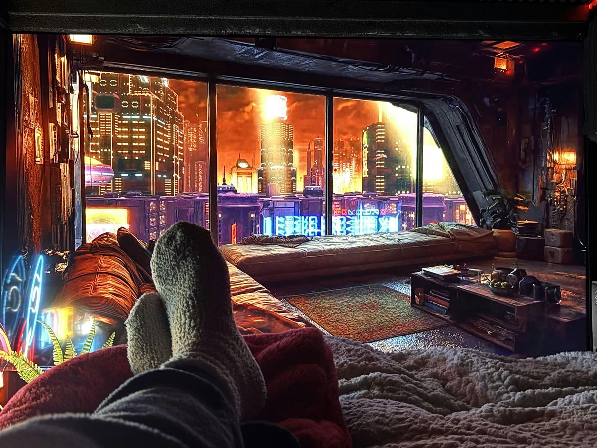A cinematic, photographic, and immersive Airbnb experience inspired by visionary sci-fi worlds such as Star Wars, Star Trek, and other futuristic dreamscapes.