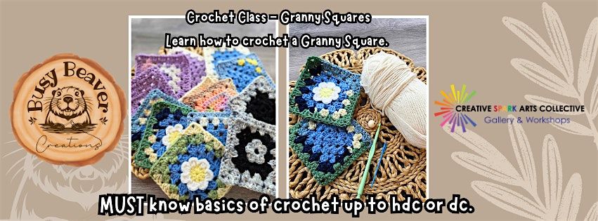 Join us for a fun and relaxed session at Creative Spark Arts where you'll learn the basics of making granny squares—a classic crochet pattern! This is NOT for beginners. You MUST know how to hold your yarn, how to chain/single crochet and how to make either a Half Double Crochet (HDC) or a Double Crochet (DC)