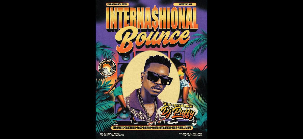 Interna$hional Bounce returns with special guest DJ Puffy for a night of nonstop global sounds and high energy vibes.