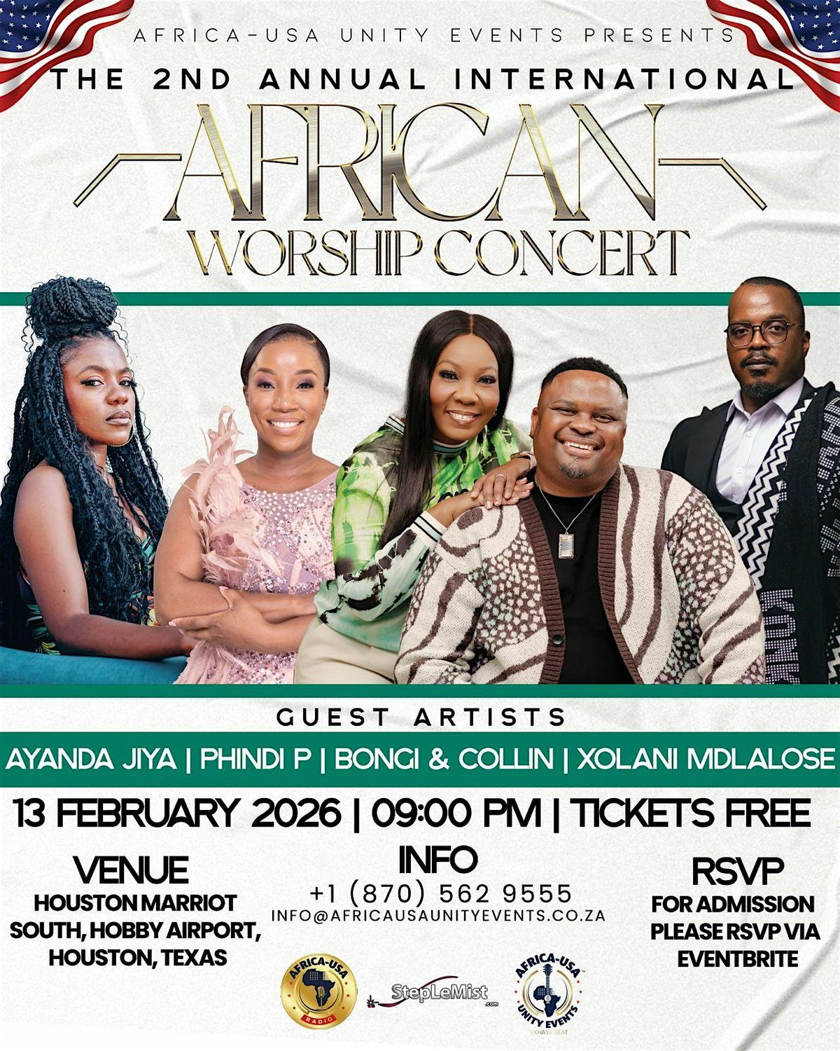 Get ready for an amazing night at the International African Worship Concert! Join us in person to experience uplifting music, vibrant rhythms, and heartfelt worship like never before. It's a perfect chance to connect with others, celebrate culture, and feel the powerful spirit of African worship up close. Don’t miss out on this unforgettable event – come sing, dance, and praise together with us!