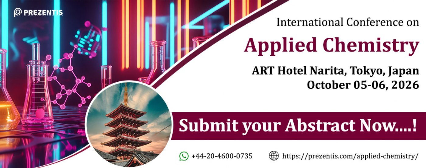 Prezentis is pleased to welcome you to the “International Conference on Applied Chemistry” that will be held on October 05-06 2026 a two-day program in Tokyo Japan to explore the fascinating world of Applied Chemistry. The theme is “Advancing Innovation Through Applied Chemical Sciences.” Our conference agenda is to provide international exposure to Speakers Delegates Scientific Researchers Academicians Doctors Professors and Scientists through their research work and to enrich the global Scientific Community.