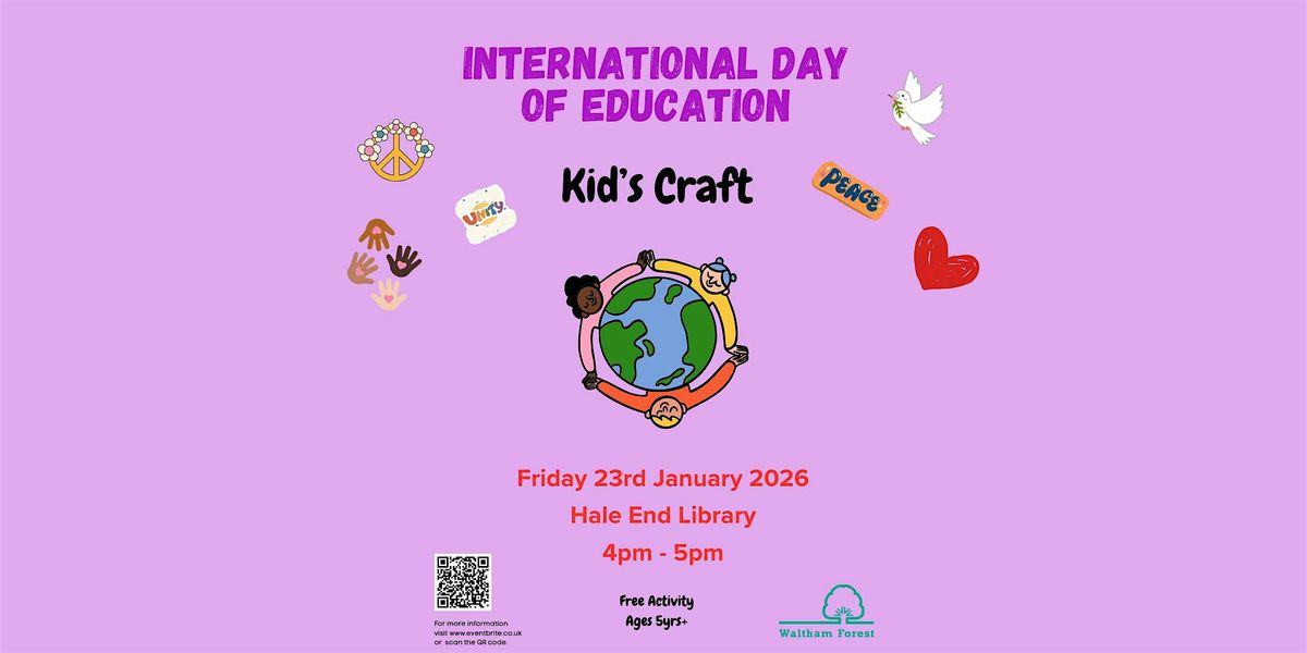 Come join us at Walthamstow Library on January 21, 2026 at 3:30 PM for a fun-filled International Day of Education Kids Craft event! Let your kids explore their creativity and learn something new while having a blast.