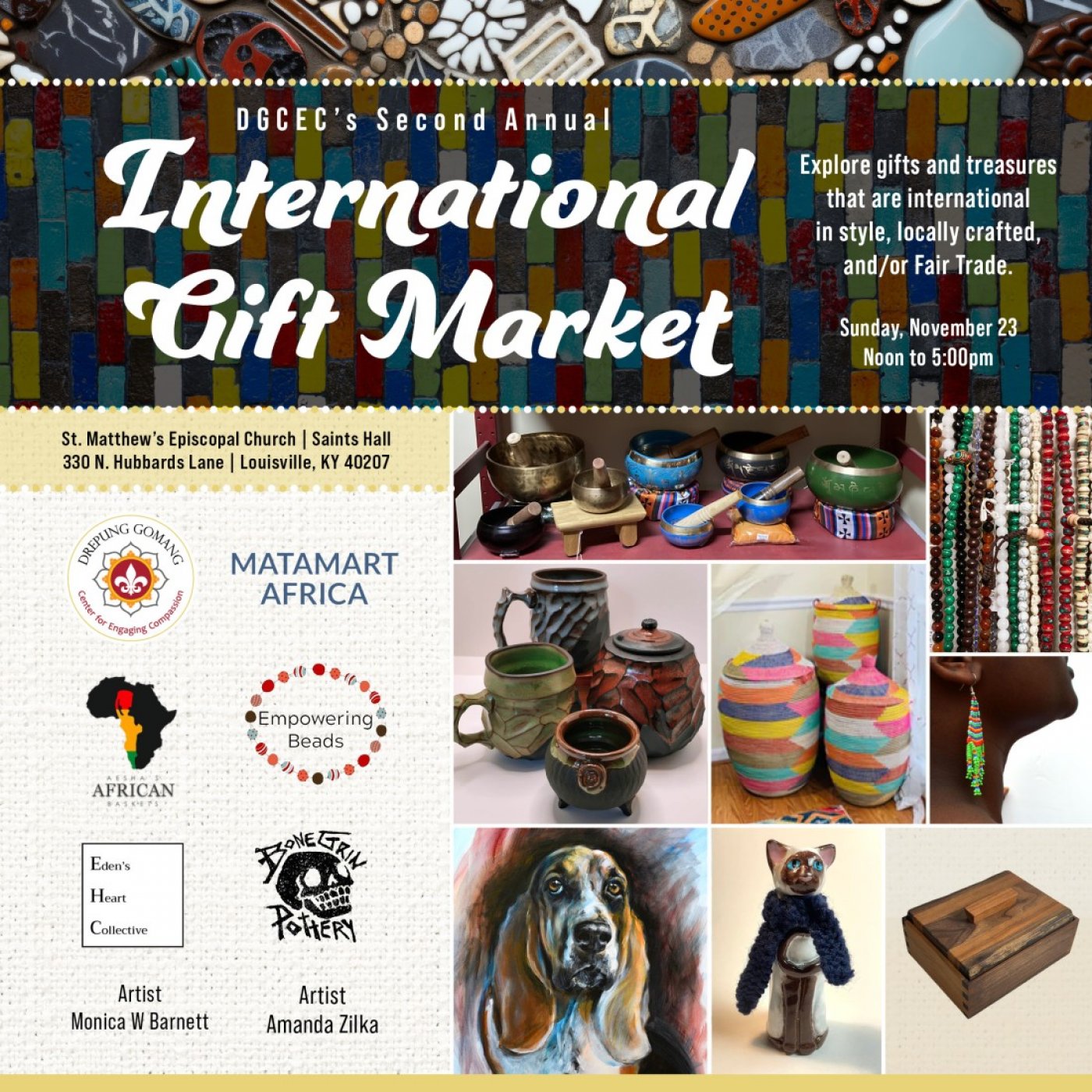 Visit this great event featuring Aesha's African Baskets Bone Grin Pottery Matamart Africa Art by Amanda Zilka and Monica W Barnett DGCEC’s Tibetan Marketplace Eden's Heart Cooperative and Empowering Beads. Artisans are selling items that are handmade locally international in style or fair trade.