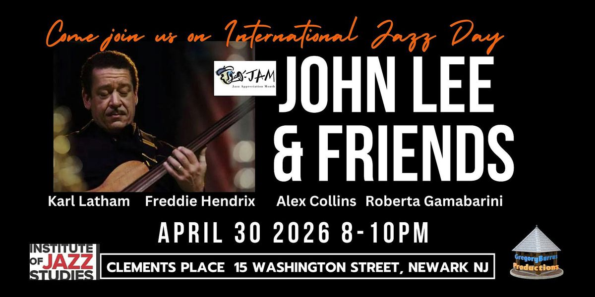 Celebrate International Jazz Day — April 30 with an unforgettable evening of world‑class music as John Lee & Friends take the stage with a powerhouse ensemble. Renowned bassist, bandleader, and longtime musical director of the Dizzy Gillespie legacy, John Lee brings together top‑tier musicians for a night overflowing with swing, soul, and inspired improvisation.