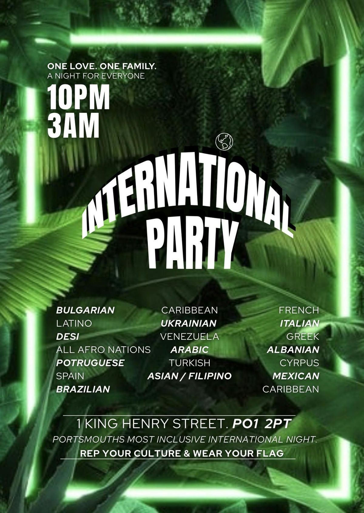 One Love. One family🙂↕️The most INCLUSIVE international night!!Big energy, Global sounds and NON STOP VIBES