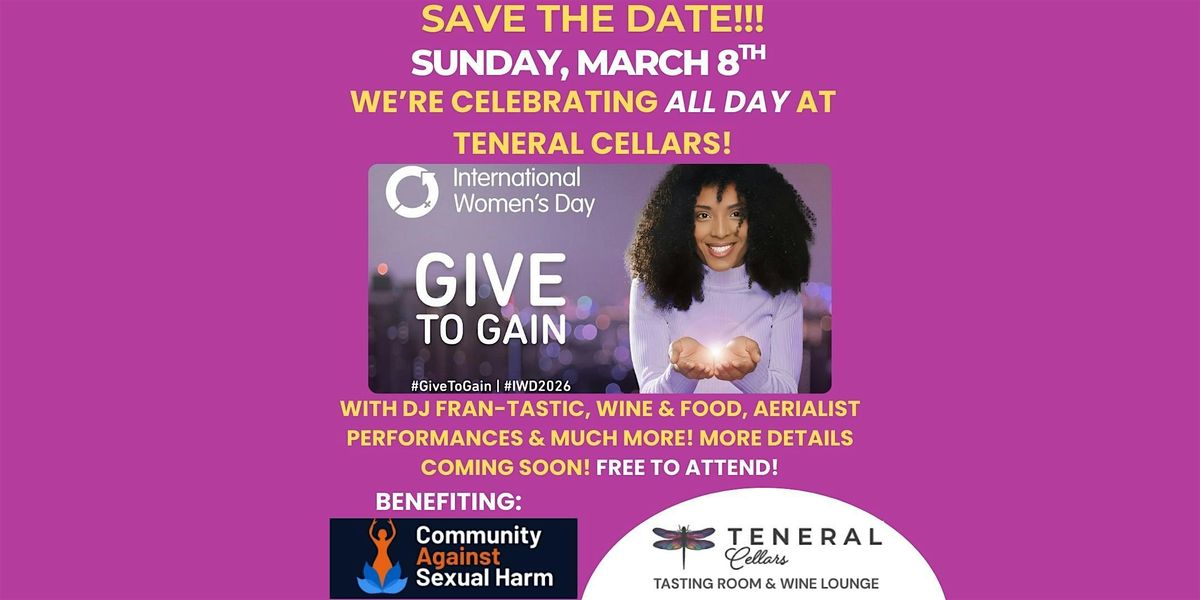 Teneral Cellars was created to elevate women in wine and to be a conduit for change. International Women’s Day is Sunday, March 8 and we are celebrating ALL DAY! We have a great day planned to including music by DJ Fran(tastic) and aerialist performance, female Makers showcased, it’s some special experiences being curated to celebrate. This year’s theme is “Give To Gain” and we are benefiting CASH, a local nonprofit organization, dedicated to supporting women affected by commercial, sexual exploitation and trafficking. More information to be added.