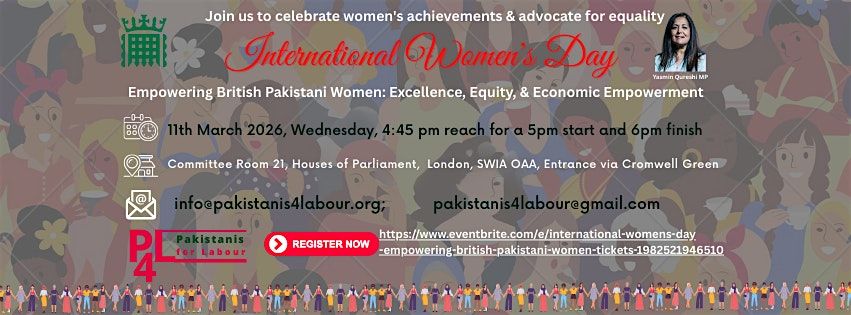 Join Yasmin Qureshi MP and Pakistanis for Labour for an inspiring evening in celebration of International Women’s Day 2026. This special event will shine a light on the achievements, challenges, and aspirations of British Pakistani women, focusing on pathways to greater excellence, equity, and economic empowerment.