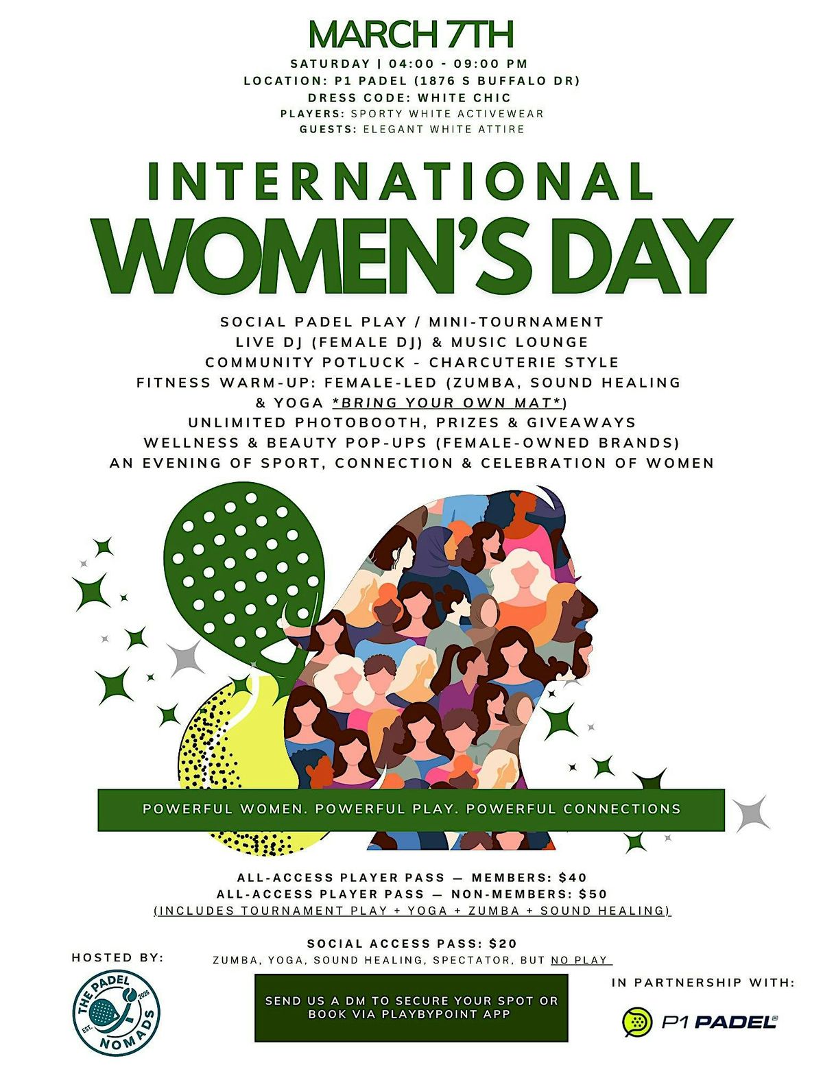 Youβre warmly invited to a special International Womenβs Day Padel Event on March 7 (4β9 PM) at P1 Padel