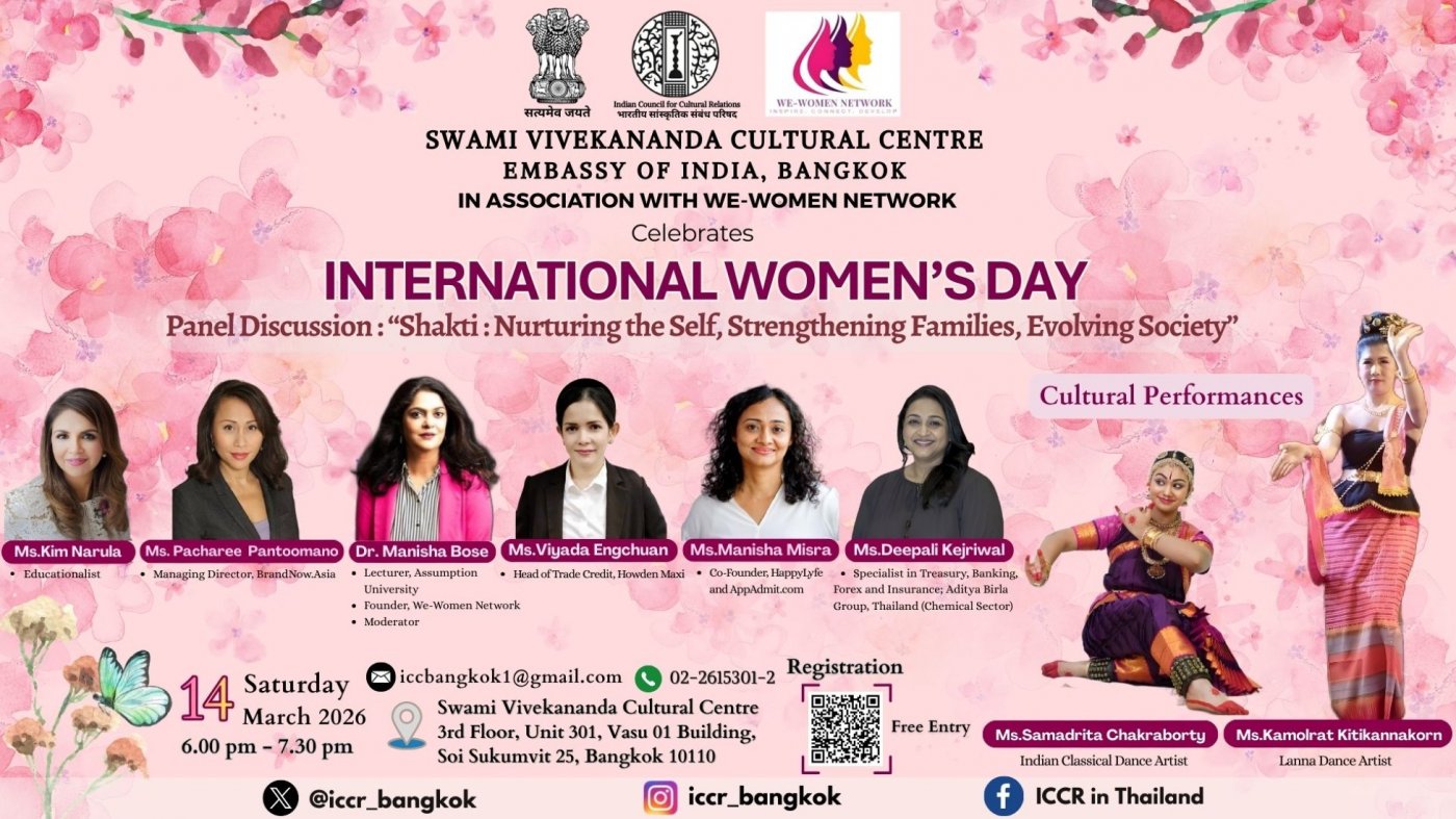 Join us for an inspiring International Women’s Day celebration hosted by the Swami Vivekananda Cultural Centre (SVCC), Embassy of India, Bangkok, in association with the We-Women Network.