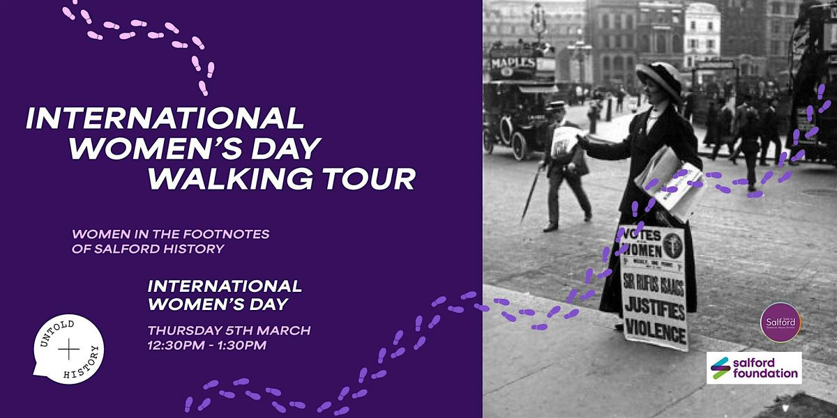 On Thursday 5th March, join us from 12:30pm to 1:30pm at the Spice & Grind trailer for Women in the Footnotes of Salford History, a guided walk celebrating the hidden stories of women across the city. In honour of International Women’s Day, we’ll explore New Bailey and Chapel Street, uncovering lives that have too often been left in the margins of history.