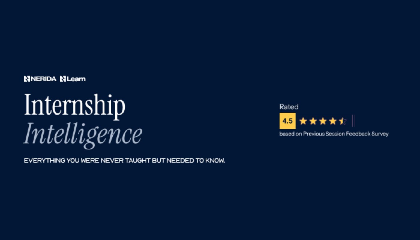 Internship Intelligence is a live, online session by Nerida Group, designed to give students and early-career professionals the unwritten playbook of the internship world. This is Session 03, having been conducted twice before with 400+ participants trained and a consistent 4.5/5 rating.