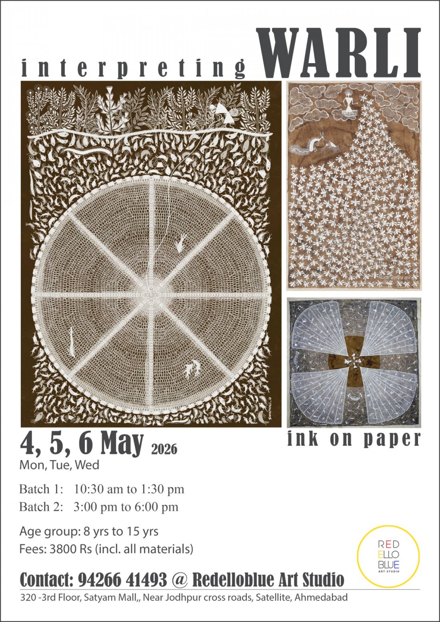 Welcome to the world of warli but with a twist of your own interpretation. This is a three day workshop and the details are given below