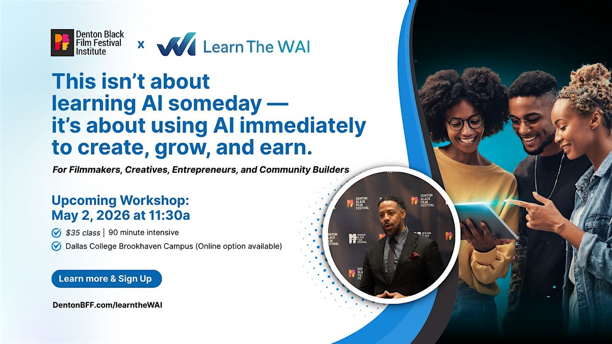 The Denton Black Film Festival (DBFF), in partnership with Learn The WAI, presents a live AI workshop designed to introduce creatives, entrepreneurs, and professionals to practical AI tools that enhance productivity, creativity, and income potential.