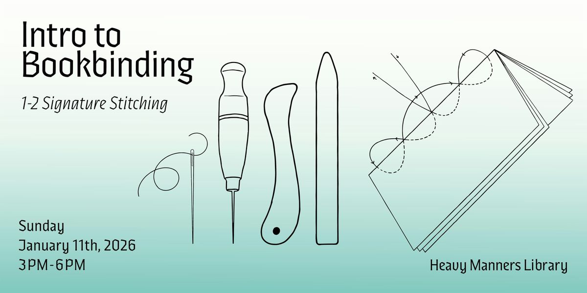 Learn the basics of non-adhesive binding by making 1-2 section books with various sewing and folding methods. We’ll cover basic terminology, tools, and make 4-5 different book structures. These methods are easy to reproduce and perfect for making unique hand-bound zines and notebooks! No experience necessary!