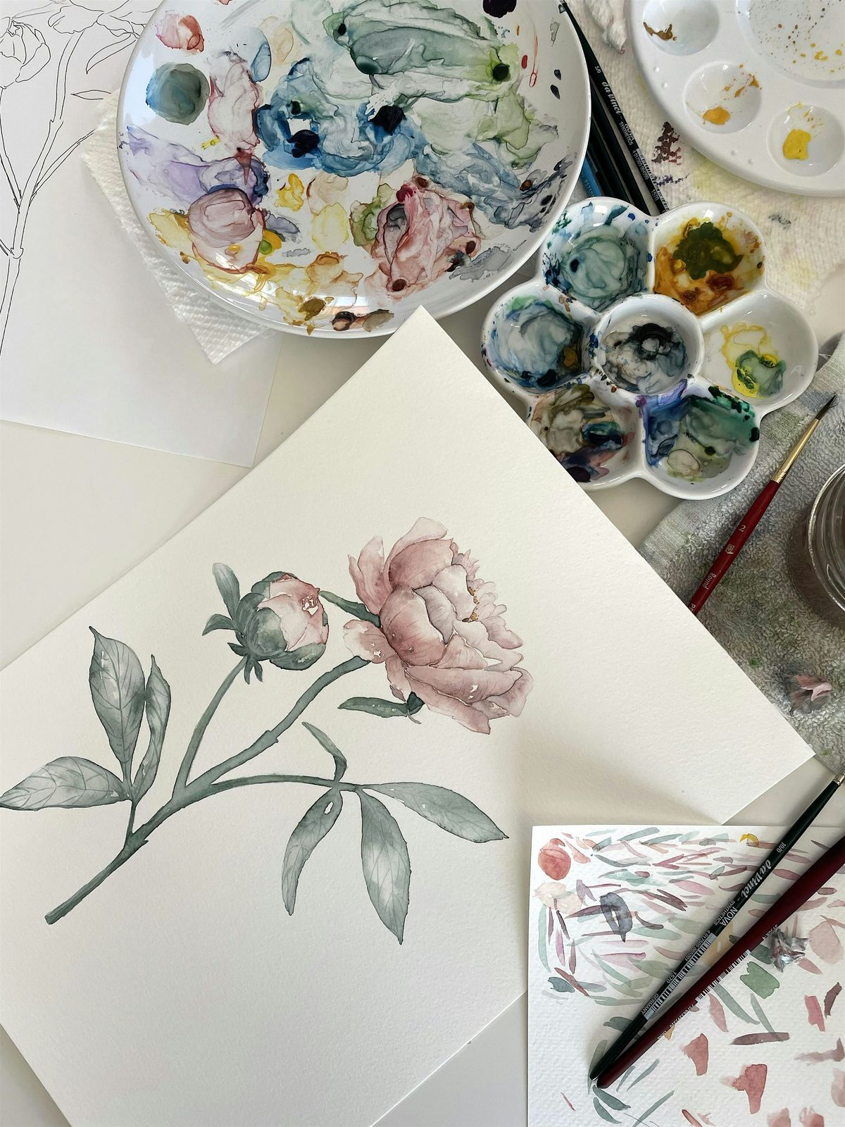 - Completing your own 5×7 inch peony artwork to take home