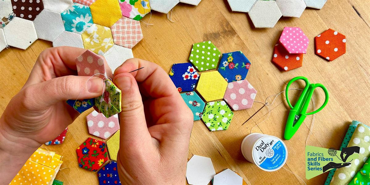 Students will create their own quilted hexagonal flower garden using the English Paper Piecing method in this beginner-friendly class. This scrap-basting quilting technique is done entirely by hand, making it the ultimate portable craft. Using pre-cut paper shapes, fabric is wrapped around and basted, then hand-stitched together to create precise designs before the paper is removed.