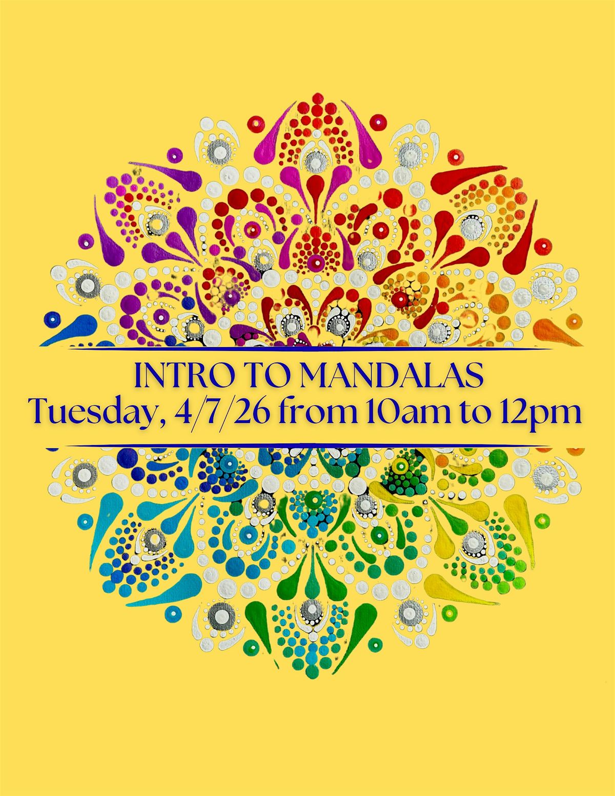 Step into the world of mandalas with this beginner-friendly dot-painting class, where creativity and mindfulness come together. Mandalas—ancient symbols of wholeness and balance—are more than just beautiful designs. They are a powerful tool for self-expression, healing, and meditation, helping us connect to the present moment and our inner selves.