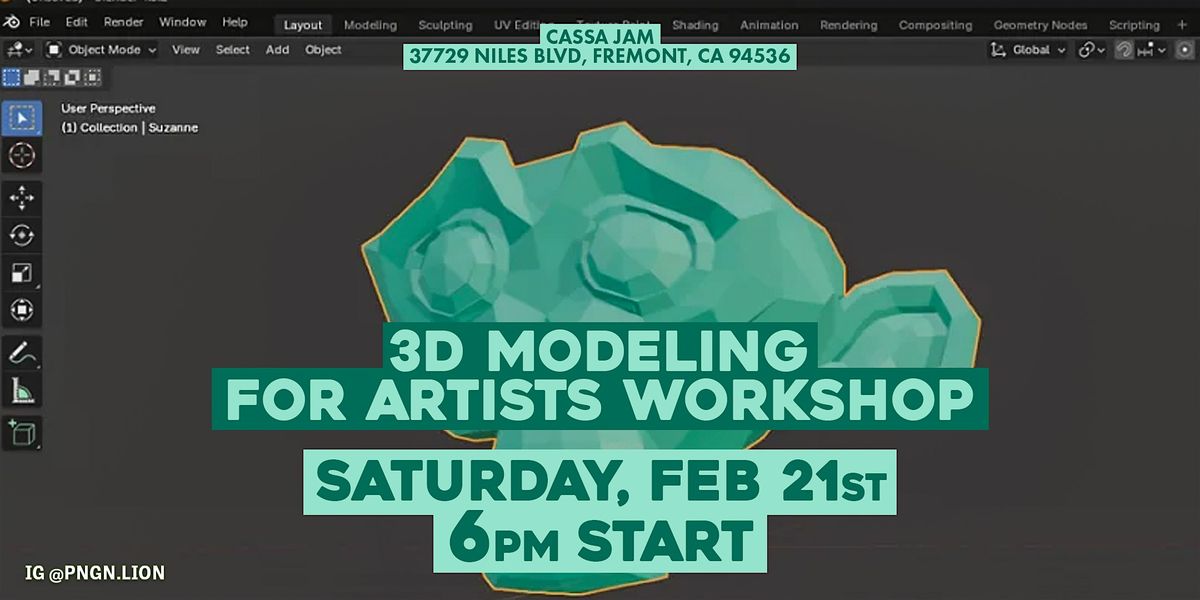 Are you an artist and wanting to learn how to 3D model your artwork? This is the workshop for you! Instructed by professor Jared Gochuico, an engineer experienced with 3D modeling and printing. Focused on assisting craft artists and vendors who would like to convert their artwork into 3D models, but open to all artists. Join us on Saturday, February 21st at Cassa Jam! Additional event details below.