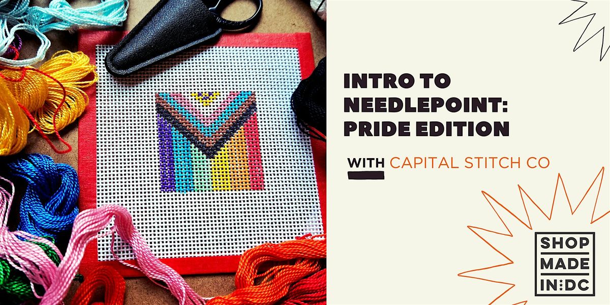 Come learn with Miri as she guides you through your very first needlepoint project. She'll teach you everything you need to know about the art of needlepoint, from setup to different stitch types. Celebrate pride month with us and bring this project home to keep the celebration going all year long!
