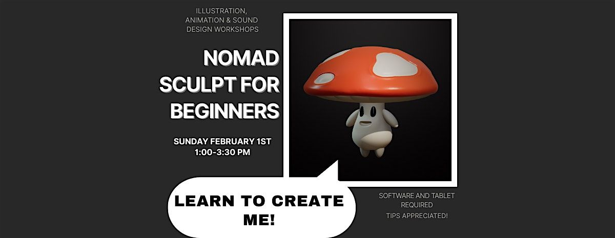 Welcome to the Nomad Sculpt 3D Intro Workshop! Are you ready to carve out some time to join us at Portland Digital Dabblers Events for a fun hands-on workshop? Together we’ll learn the basics to sculpt a cute lil 3d mushroom guy(or humanoid). Giving ourselves the freedom to make whatever grotesque creatures come to mind. Whether you’re a beginner or looking to enhance your skills, this workshop is perfect for all levels. Don’t miss out on this opportunity to boost your 3D sculpture, and 3d modeling game!
