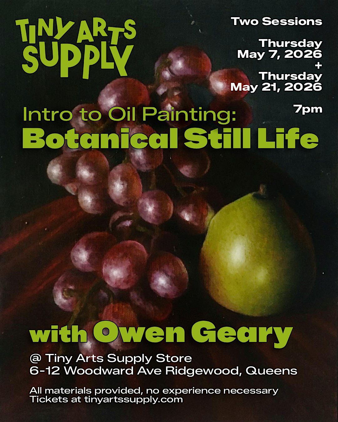 Tiny Arts Supply invites you to learn the Intro to Oil Painting - Botanical Still Life with local, Ridgewood Artist, Owen Geary.