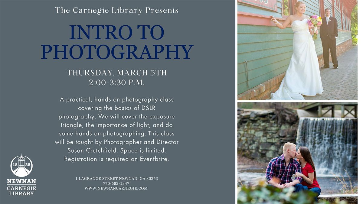 Please join us as we have Carnegie Director and professional photographer Susan Crutchfield for a hands-on, in depth photography class!About this Event