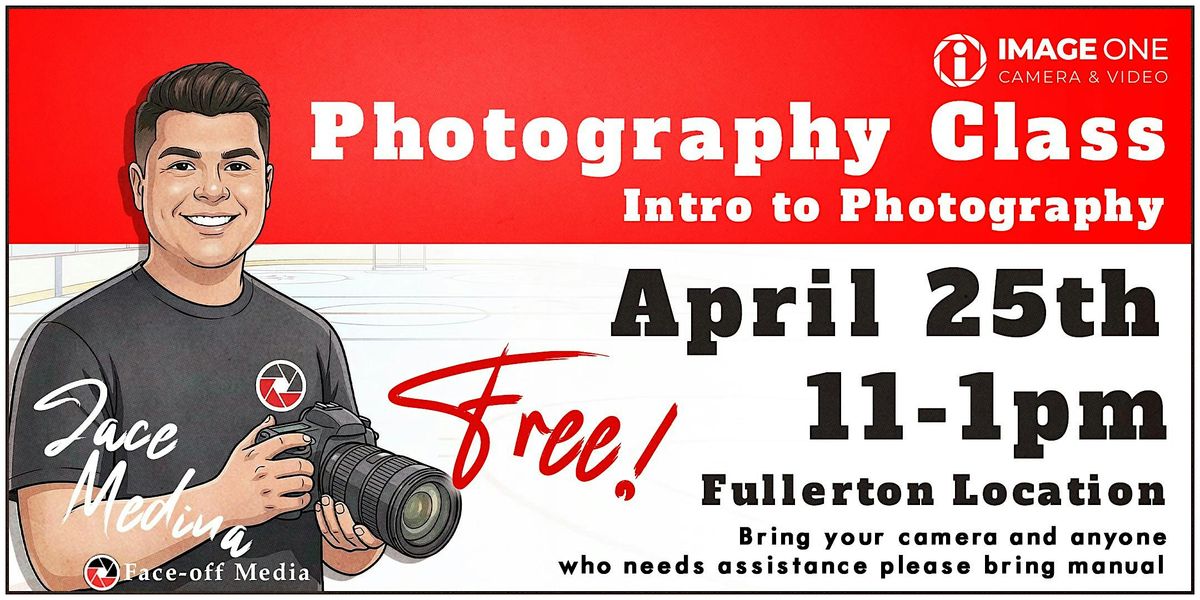 Join Jace Medina at Image One Fullerton for an Intro to Photography class designed for beginners and hobbyists. This hands-on workshop will cover essential camera settings, composition, lighting techniques, and practical tips to help you take better photos in any situation. Jace will guide you through real-world exercises, breaking down complex concepts into simple, actionable skills. Whether you’re shooting portraits, landscapes, or everyday moments, this class will give you the confidence to capture stunning images and start your photography journey.