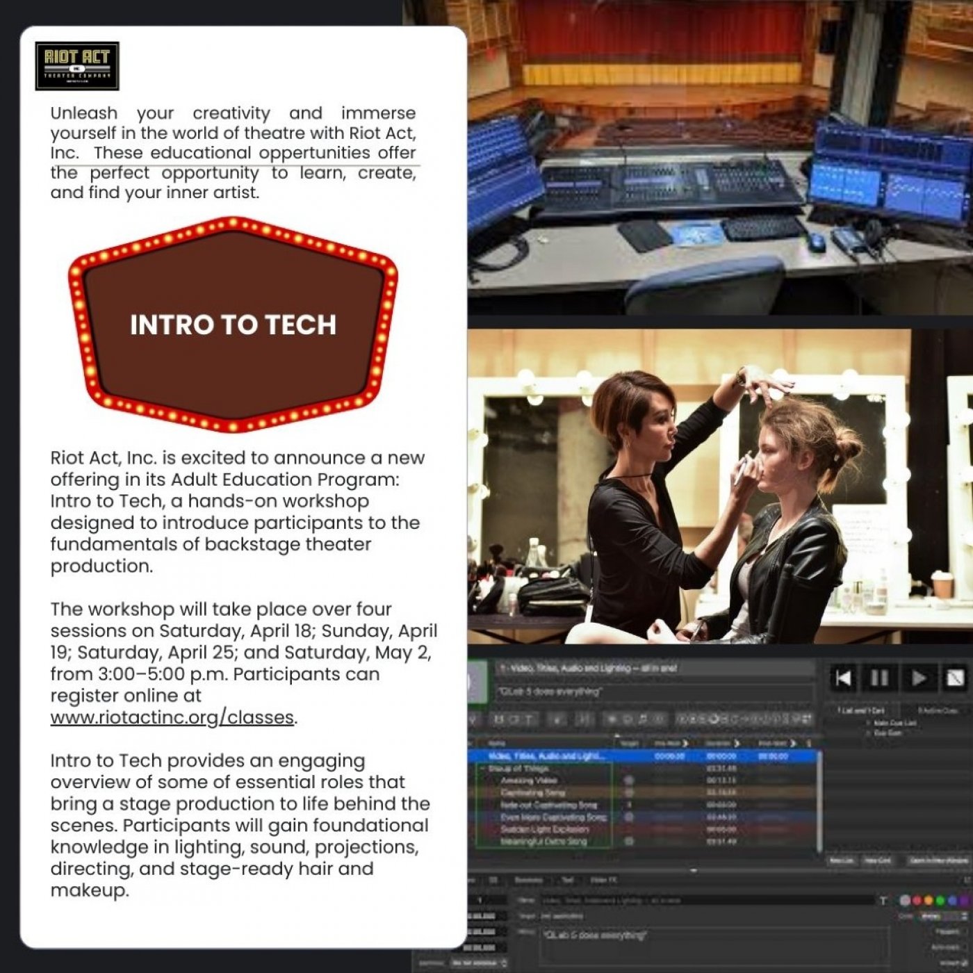 Riot Act Inc. is thrilled to announce another great workshop in our Adult Education Program: Intro to Tech. Classes will run Sat. April 18, Sun. April 19, Sat. April 25 and Sat. May 2 from 3-5p. Register on Riot Act’s website www.riotactinc.org/classses.