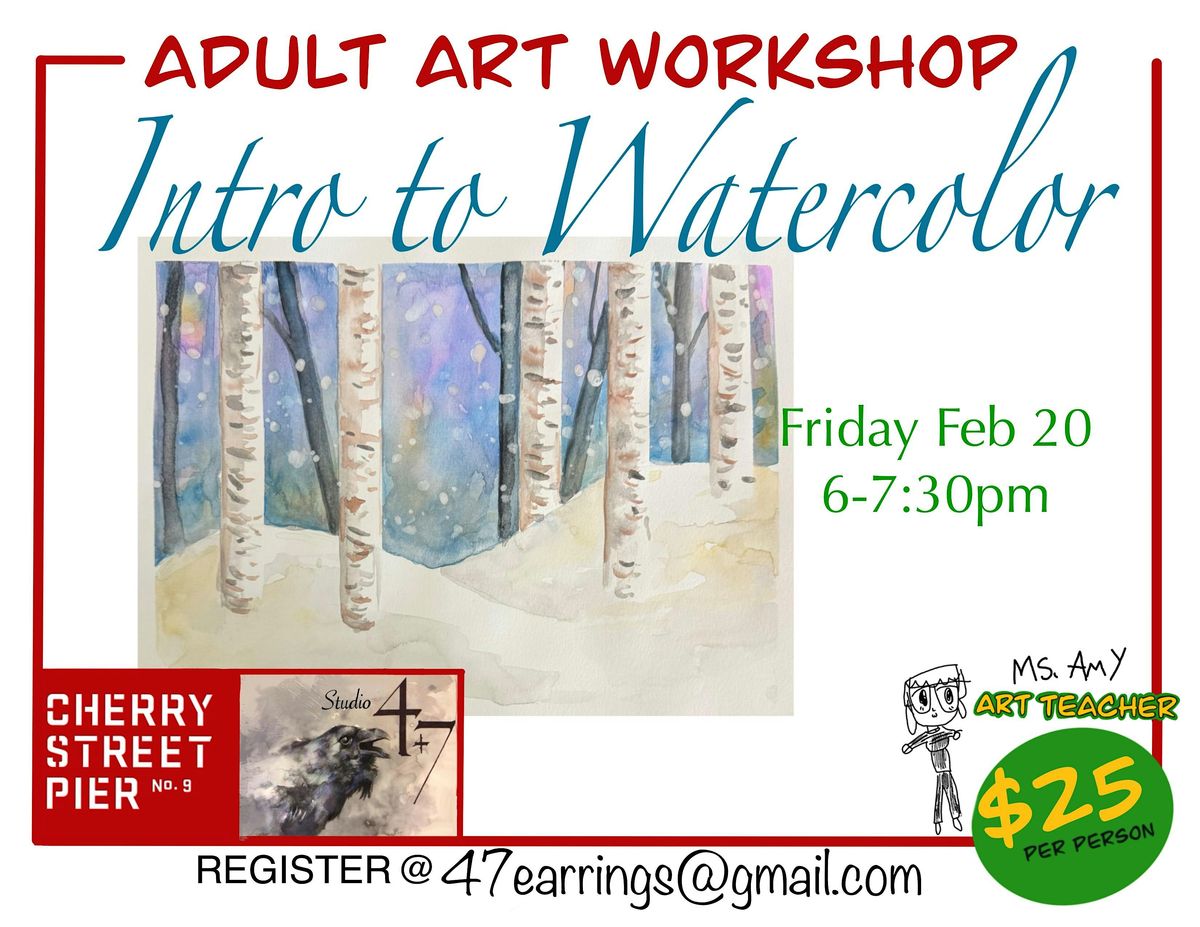 Come to Cherry Street Pier to learn about the techniques and materials used in watercolor art. MS.Amy will guide you through different techniques and watercolor paints. After some experimenting she will show you how to make a winter scene painting.