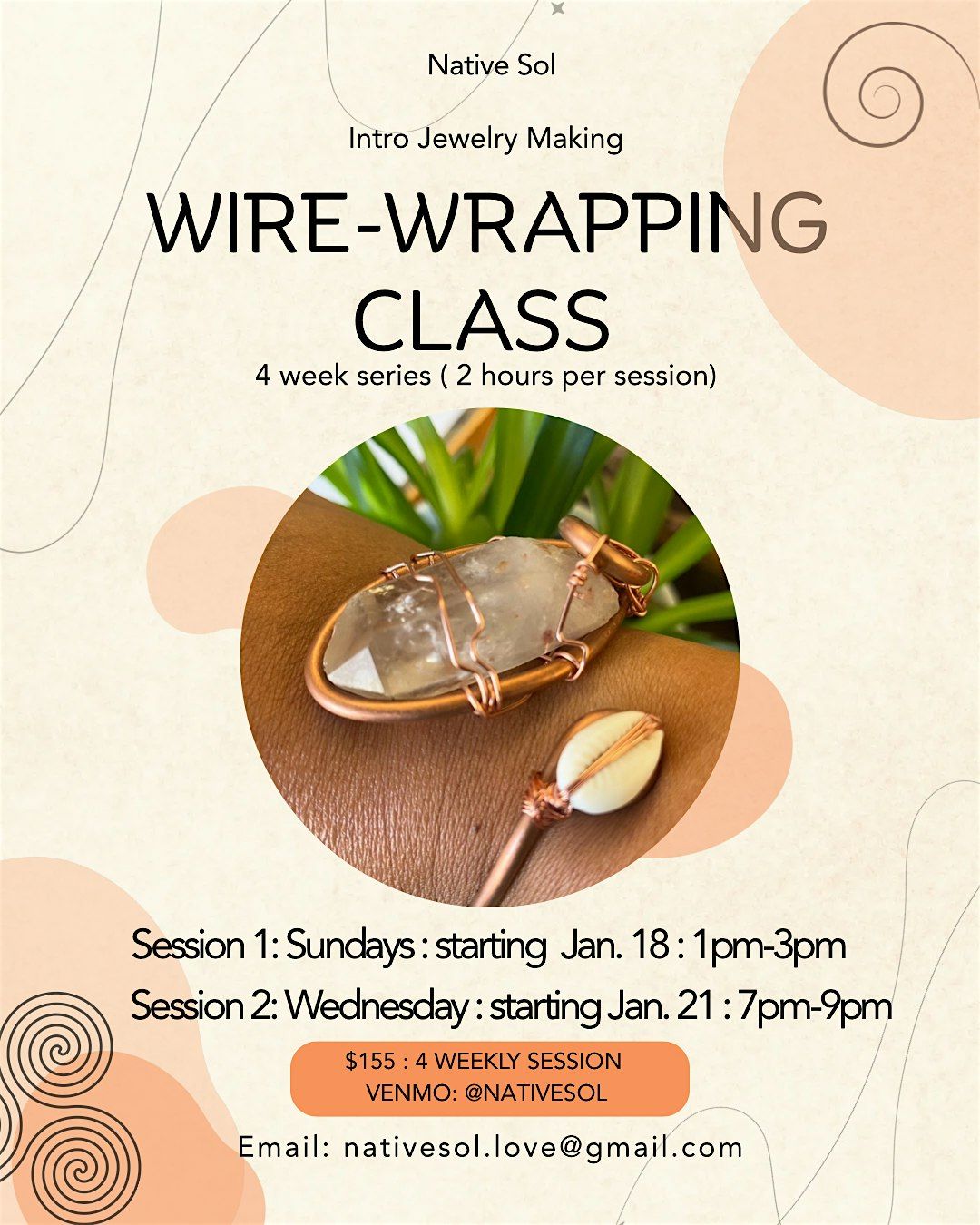 We are excited to offer a 4 week intro to wire wrapping class. 2 session options available.