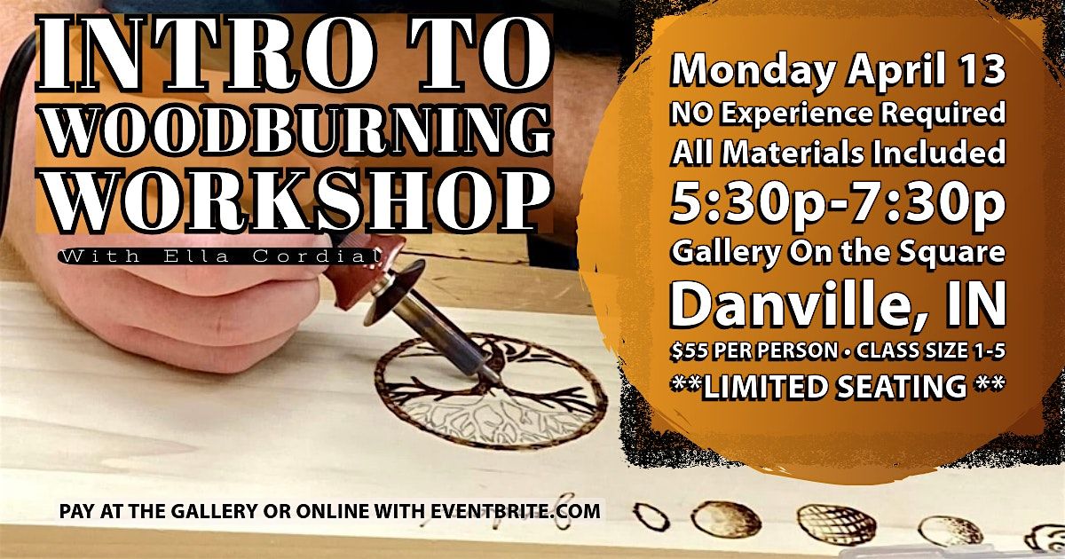 No Experience required. All Materials included. Learn all the beginner techniques, how to transfer an image to wood & use a variety of tools