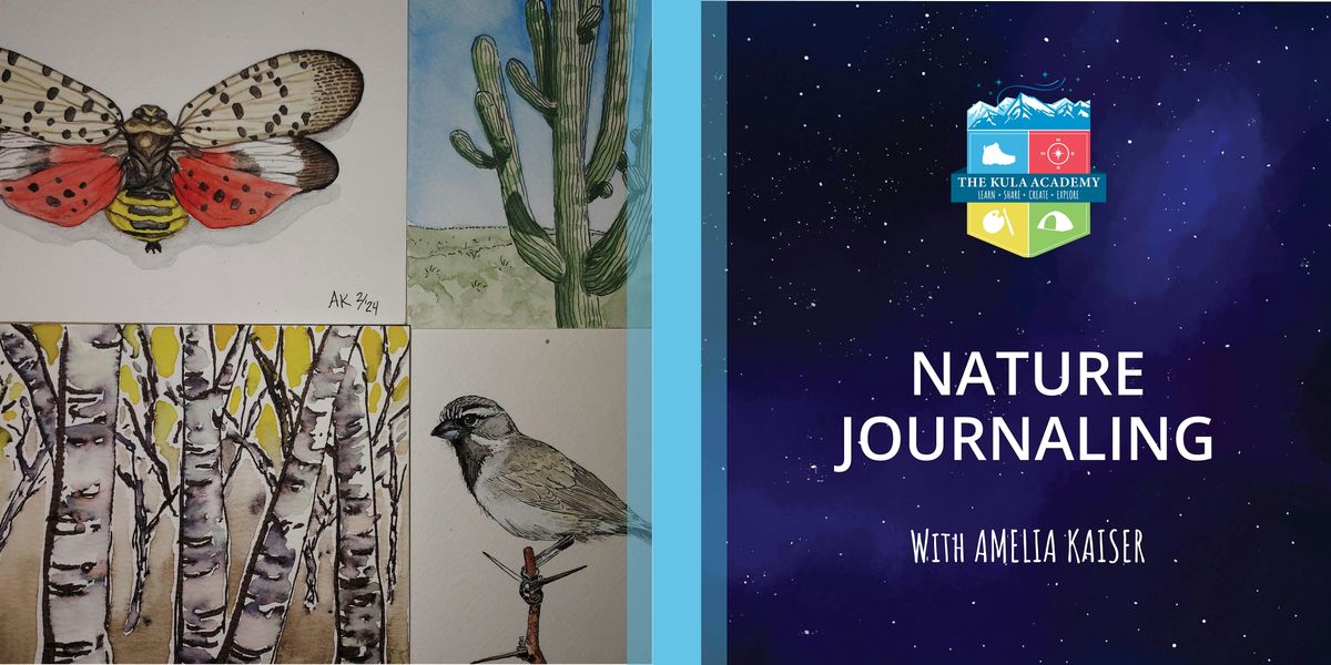Together, you will go over some key concepts of journaling outside, then follow a few prompts to guide your time observing, sketching and following your curiosity. You will leave with the ability to repeat these steps and connect more deeply with the outdoors wherever your next adventure takes you!