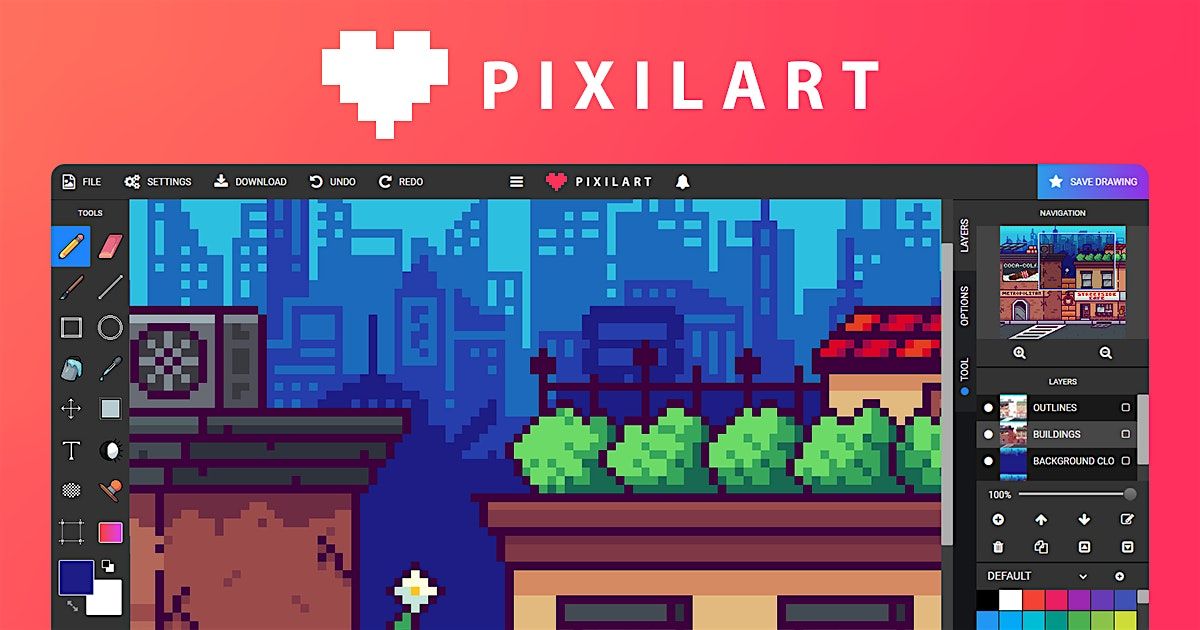 Pixilart.com is a website dedicated to allowing artists a platform to create, share artwork, challenge each other to draw about certain topics, join theme-centred groups, discuss pixel art, etc. It presents itself as a free and easy-to-use alternative to programs like Aseprite and Photoshop, with both a built-in online editor and an active community to post your work to.