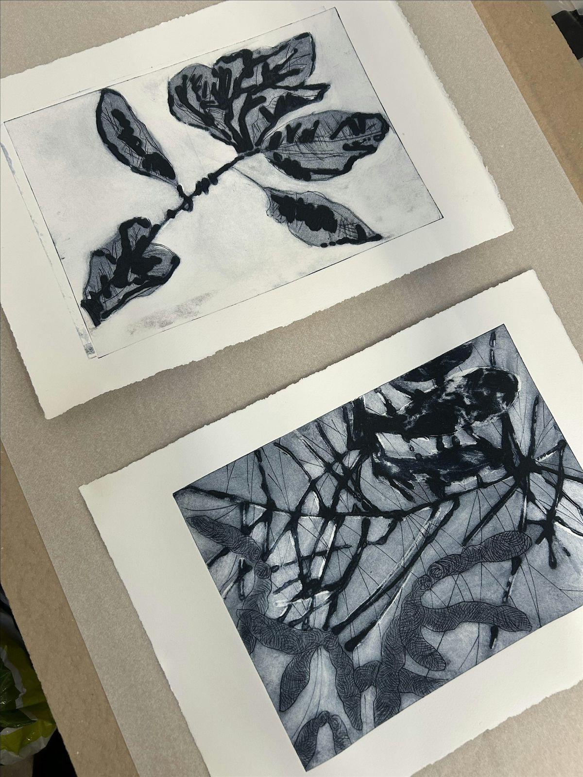 Collograph – a versatile printmaking technique that allows textured plates to be created using layered materials, producing rich tonal variation and varied mark making.