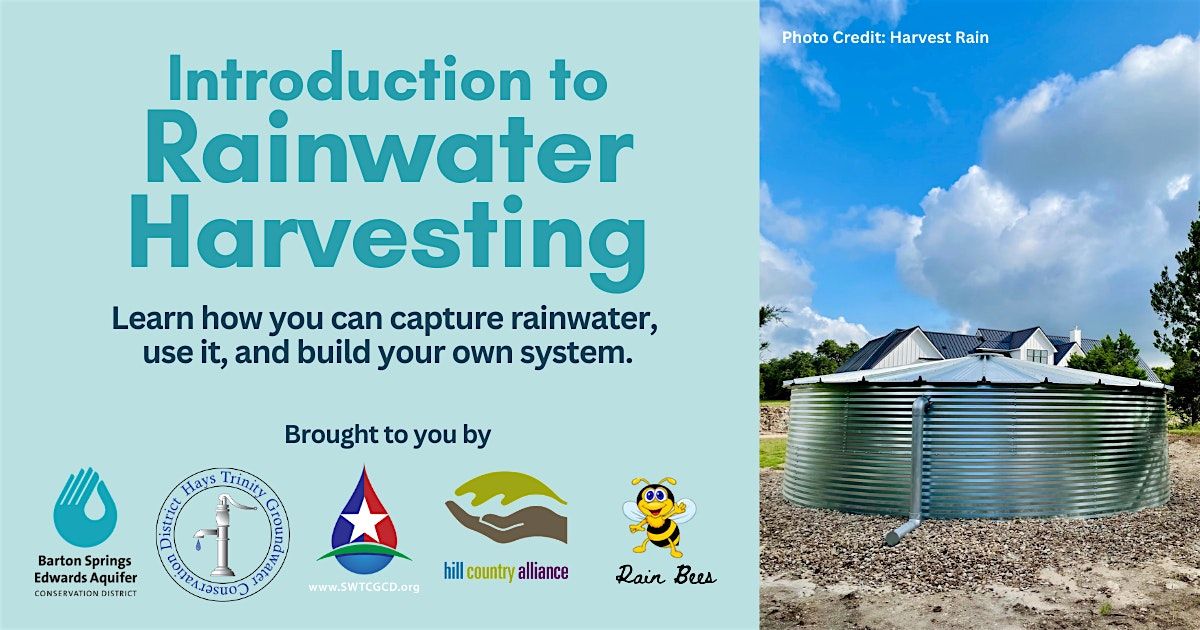 Whether you’re interested in using rainwater for landscape irrigation or supplying water for your home, join us for this informative presentation. We will walk through the basics of rainwater harvesting so you can understand what’s possible for your property. Come early or stay late to talk to local rainwater harvesting system retailers and groundwater conservation districts.