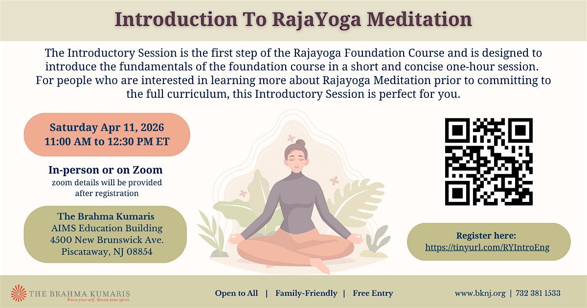 For people who are interested in learning more about Rajayoga Meditation prior to committing to the full curriculum, this Introductory Session is perfect for you.