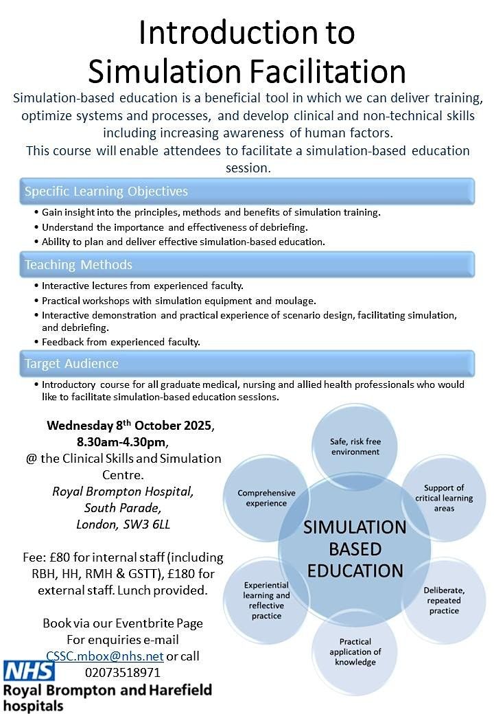 A one-day practical and interactive workshop for all clinical staff interested in facilitating simulation training.About this Event